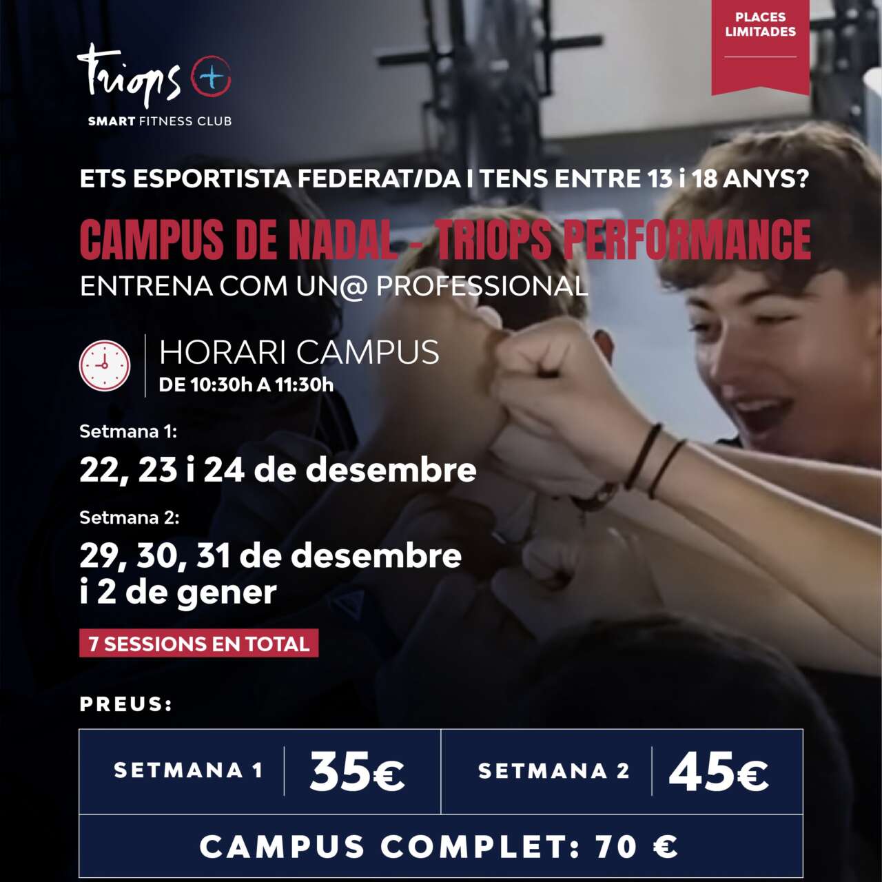 2 setmanes d’entrenament específic amb un enfocament segur, adaptat i amb un ambient proper i motivador.